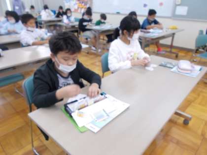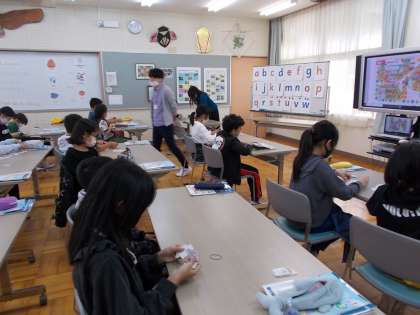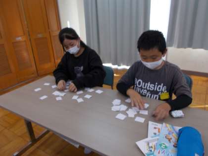 「小文字のアルファベット」を学習しました。小文字のアルファベットのカードをアルファベット順に並べていました。