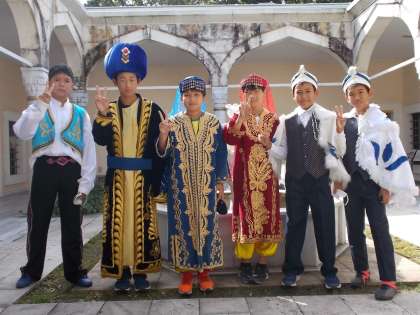 班ごとに好きな国の民族衣装を着ました。みんな、似合っています。