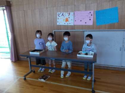 各ブースに分かれて、どんぐりゴマの作り方や輪投げの遊び方などを説明する練習をしました。みんな台詞を覚えていて、元気よく発表していました。本番が楽しみです。