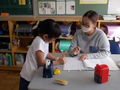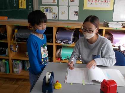 「九九」の学習をしました。一人ずつ先生の前で先生に言われた段を言っていました。九九は大切なので、どんどんマスターしていきましょう。