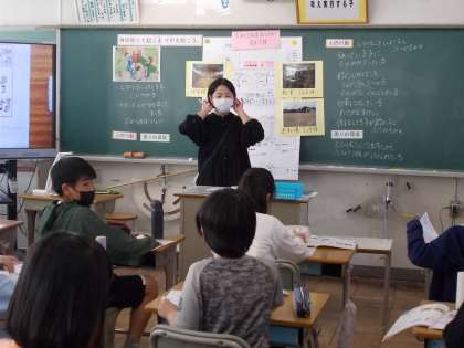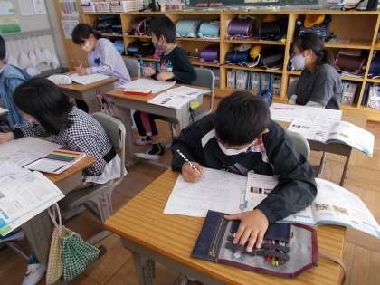 「身の回りで起こるけがを防ごう」を学習しました。養護教諭の先生が授業をしました。何が原因でけがが起こったのかをプリントに書いていました。