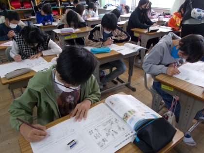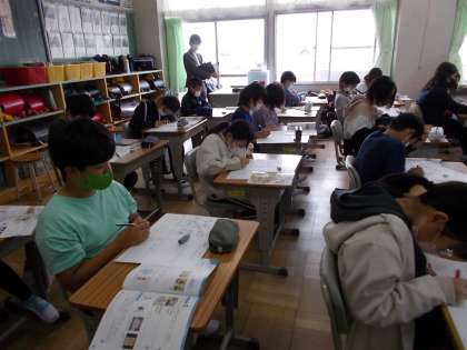 養護教諭が保健の授業を行いました。お客様も5年生の授業の様子を見に来てくださいました。みんな、意欲的に取り組みました。