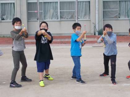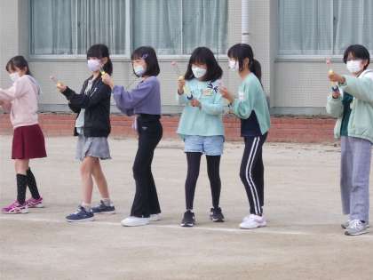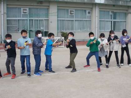 どうしたら遠くに飛ばすことができるかを考えながら、取り組みました。