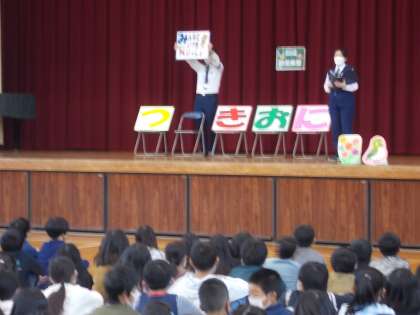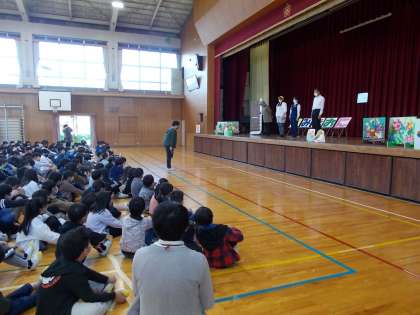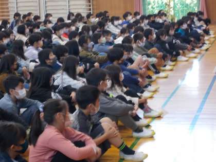 4〜6年生の様子です。落ち着いて真剣に話を聞いていました。さすが高学年です。最後に児童代表がお礼の挨拶をしました。