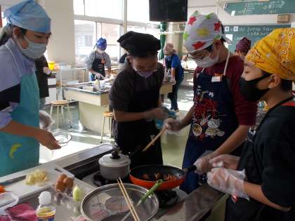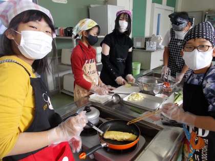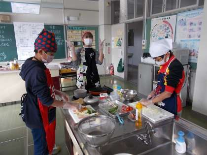 「まかせてね今日のおかず」の学習で、おべんとうのおかず作りの調理実習をしました。班の友達と協力しながら、手際よく作りました。
