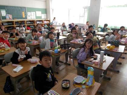 お家の人が作ってくれたお弁当を「おいしい!」と言いながら食べていました。