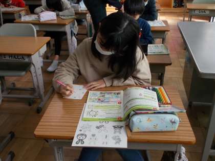 年賀状を書きました。年賀状を出したい人を思い浮かべながら、丁寧に書くことができました。