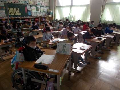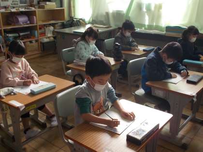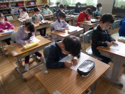 たしかめプリントを行いました。終わった児童は、裏に漢字を丁寧に書いていました。