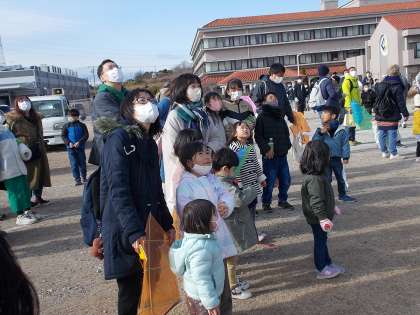 地域や保護者の方が力を合わせて凧をあげる姿は、とてもかっこよかったです。たくさんの人が、凧があがる様子を見守っていました。