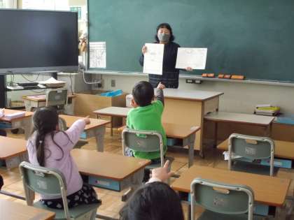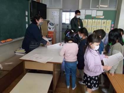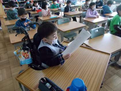 ペアの6年生に書く手紙のデザインを決めていました。2種類のデザインから、好きな方を選びました。とてもうれしそうでした。