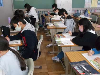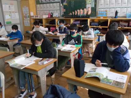 林業について学習しました。間伐することがなぜ大切かなどを知り、ノートに書いていました。