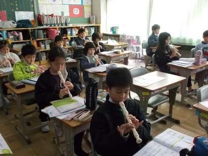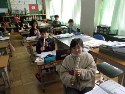 リコーダーの練習をしていました。今までに習った曲をそれぞれが集中して吹いていました。