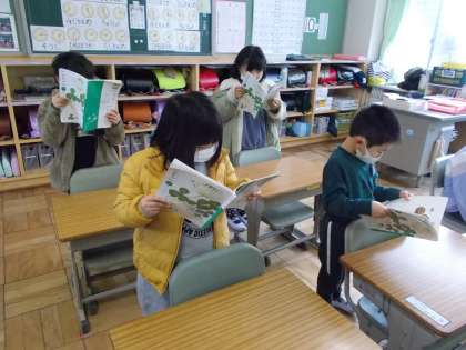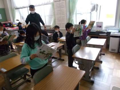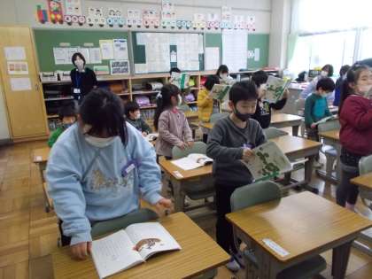 「どうぶつの赤ちゃん」を音読しました。読み終わった児童から順に座っていきました。どの児童もすらすら読んでいました。