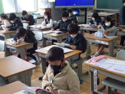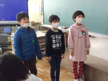 「ウンパッパ」という曲の歌のテストを行いました。3人ずつ歌いました。どの児童も元気よく歌っていました。その他の児童は、読書をしたり、勉強したりしていました。