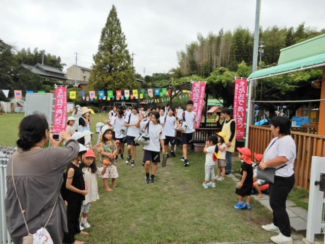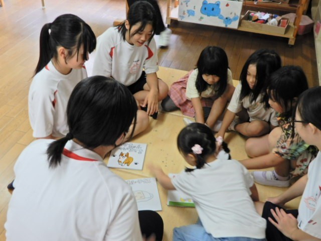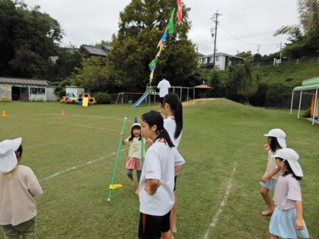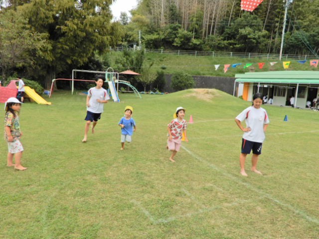 手作り絵本の読み聞かせのほか、外で竹馬やかけっこをしました。