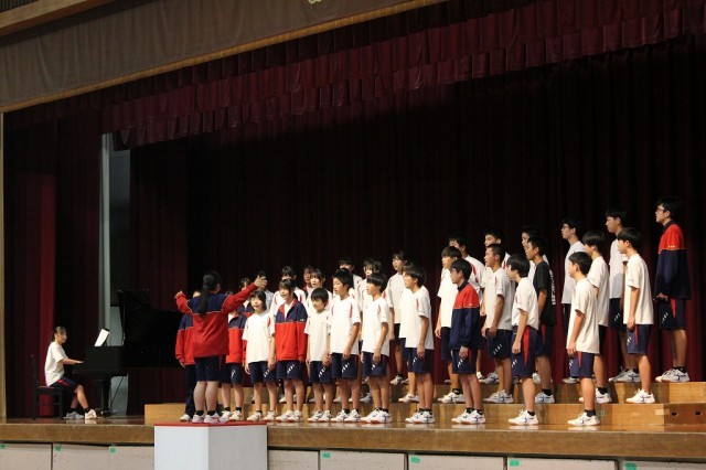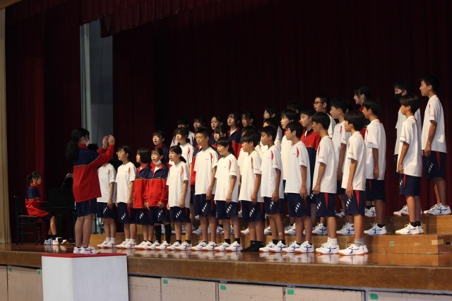 今日は、来週16日(木)に行われるAMFに向けて、リハーサルを行いました。今年から、本番と同様の流れで行いました。どのクラスも流れをよく理解して、取り組むことができました。また、司会進行役や扉の開閉など、会を支える生徒たちも自分たちの仕事を確認することができました。本番まで、あと一週間となりました。どのクラスも入賞目指して頑張ってください。