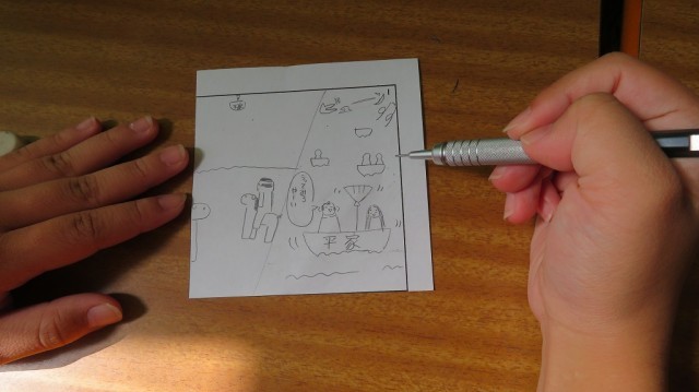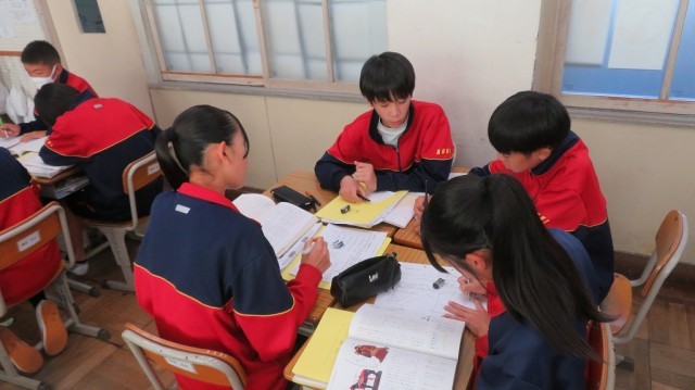 2年生は国語科の授業で、「平家物語」について学習しています。古文で書かれた物語の内容を知るだけでなく、「漫画」に表すことで、理解の定着を目指していました。生徒たちは、活発に意見交換をすることで、場面の様子や登場人物の気持ちを考えて絵に表現することができていました。