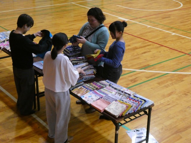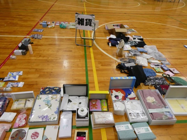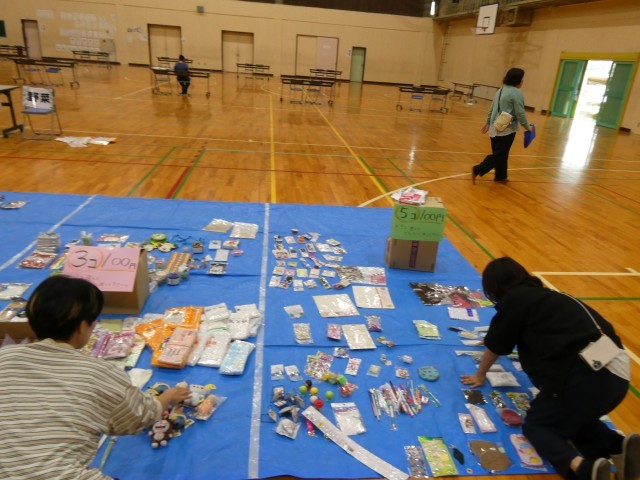 今日はPTAの役員、委員さんが地域や保護者の方から提供いただいた品物をならべたり、値段を決めたりしていました。