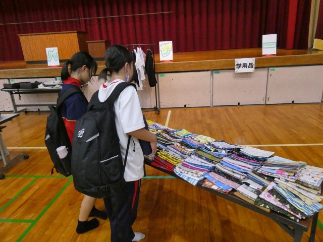 バザーコーナーでは、制服や日用品、雑貨、ランチョンマット、お酢など様々なものが売られていました。