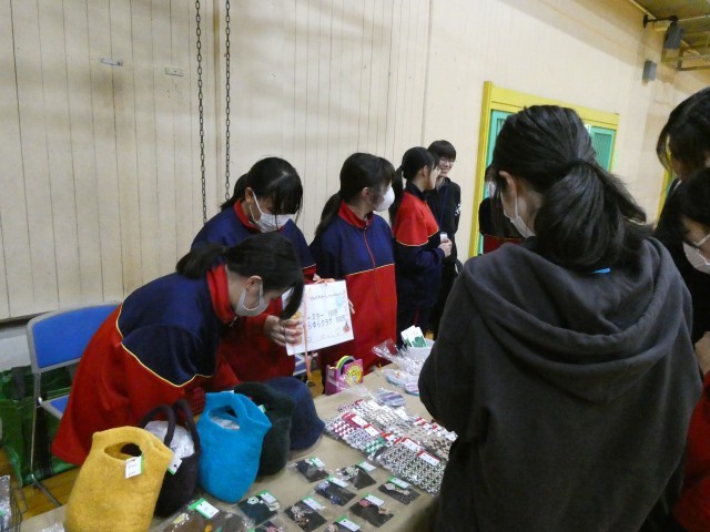 また、マルシェでは、ハンドメイド作品が並び、かわいらしい雑貨が数多くありました。家庭科部の作った小物もあり大好評でした。