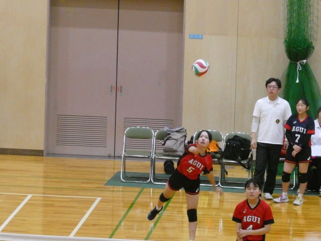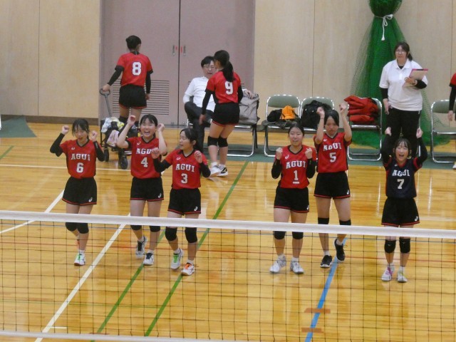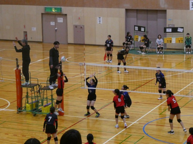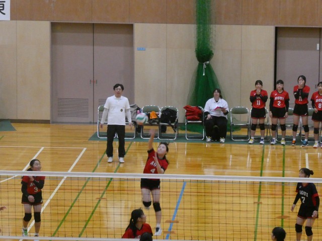 女子バレーボール部が半田市スポーツ大会の1回戦を戦いました。1セット目を取られてしましいましたが、2セット目は中盤から勢いに乗って取り返し、勝負の行方は3セット目となりました。3セット目は接戦となり、最後まで粘りましたが、惜しくも負けてしまいました。得点が決まるたびにコートの選手もベンチの選手も全身で喜びを表現する姿が印象的でした。悔しい負けとなってしまいましたが、今後の活躍にも期待できる試合でした。新たな目標に向けて、がんばれ、女子バレーボール部!
