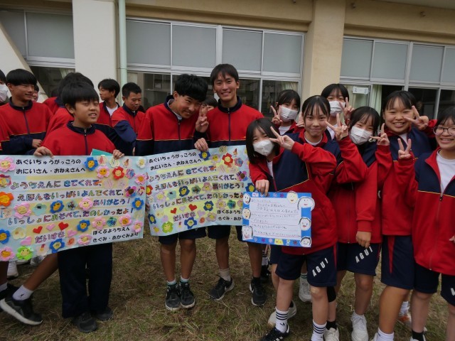 みんなで作ったお礼の手紙や歌のプレゼントをしてくれました。2年生の生徒たちもとても喜んでいました。