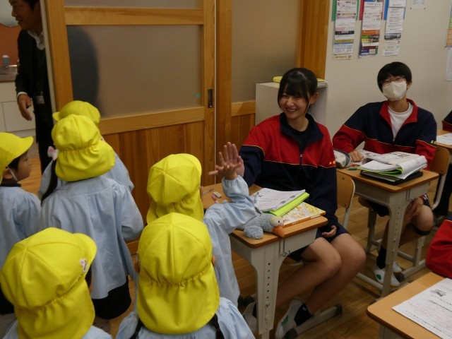 今日は、2年生のが稚園実習で一緒に過ごした園児のみなさんが来校してくれました。