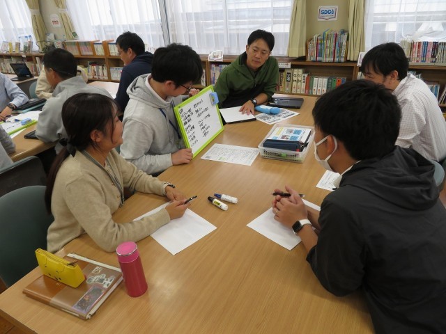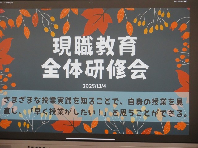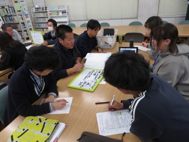先日行われた学校公開週間で取り組んだ授業について、教員同士の情報共有を行いました。学校では、他者の考えを取り入れ、考えを深めていく「協働的な学び」について研究をしています。自分のグループだけでなく、他のグループからも情報を取り入れる方法で、多くのの授業実践について知ることができました。これからも、生徒の皆さんの力を高めていけるように研究を続けていきます。