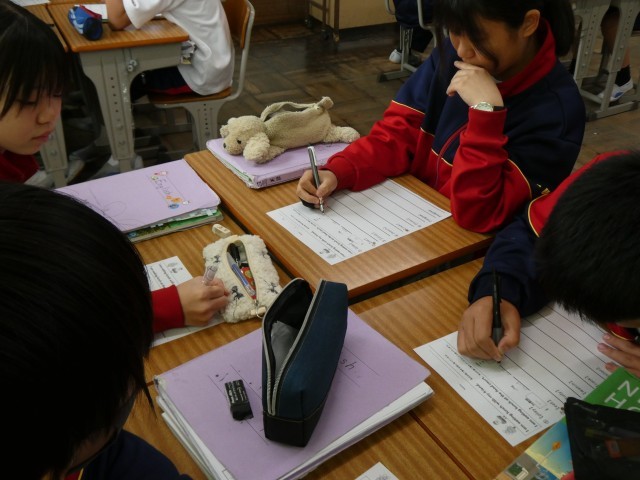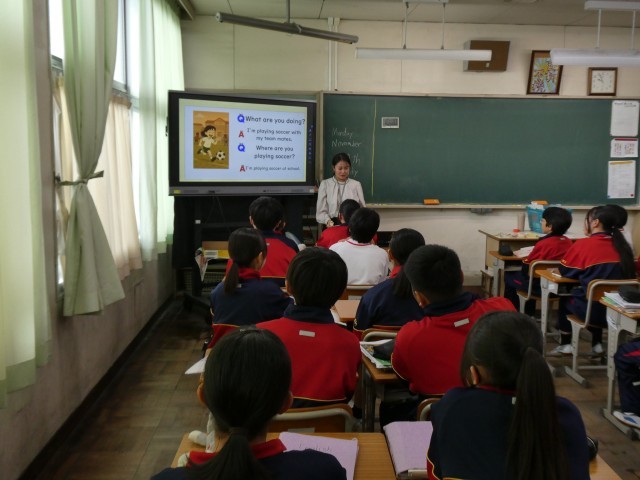 これまでの授業で学んだ現在進行形の英文をグループで作ったり、発話の練習を行っていました。その後、英文を使った会話をしたり、追質問をしたりしながらすごろくを楽しむ姿が見られました。一人一人が学んだことを生かして活動に参加し、学びを深めました。