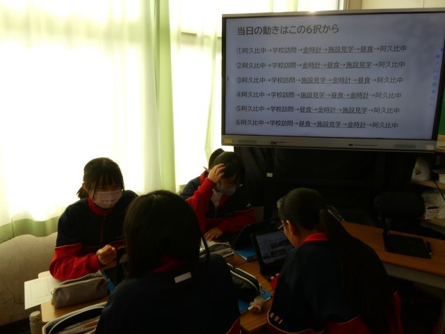 1年生は、三学期に予定されている名古屋分散研修の計画を立てていました。