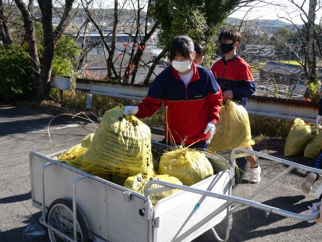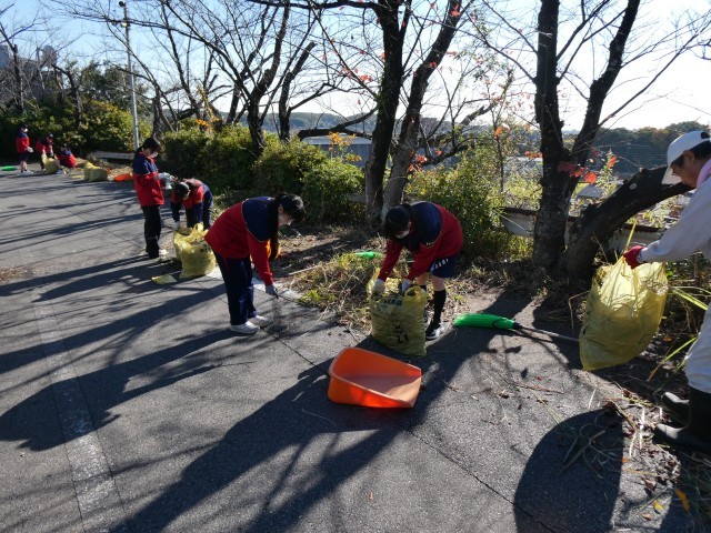 ボランティアに参加した生徒と地域の方のボランティア「阿中応援団」のみなさんが桜坂をきれいにしようと、草刈りをしたり、掃除をしたりしてくれました。限られた時間の中ではありましたが、精いっぱい作業に取り組んでくれたおかげで、見違える程きれいになりました。