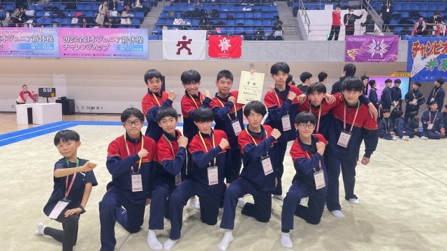 新体操部が、東京で行われた全日本ジュニア新体操選手権大会に参加しました。これまでの練習の成果を発揮し、5位入賞を果たしました。3年生にとっては最後の大会となりましたが、それぞれがもつ力を出し切り、満足のいく結果でした。全国大会5位という結果は、たいへん立派です。