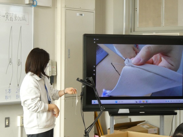 久しぶりの裁縫で、苦戦している生徒も多くいましたが、一生懸命取り組んでいました。