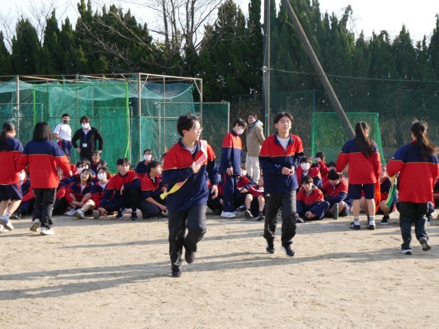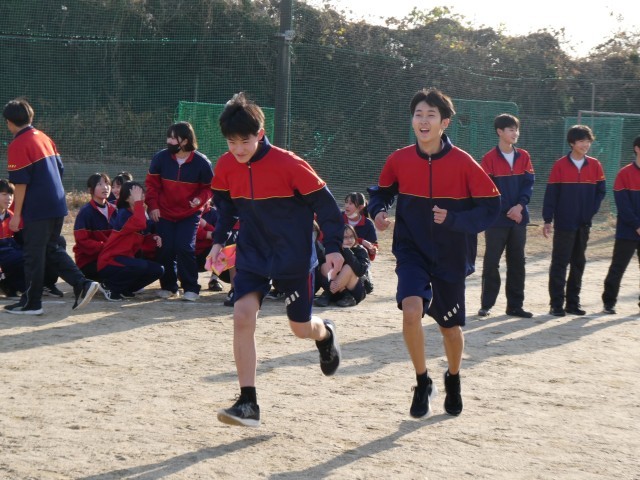 2年生が運動場で学年レクリエーションの「借り人競争」を行っていました。