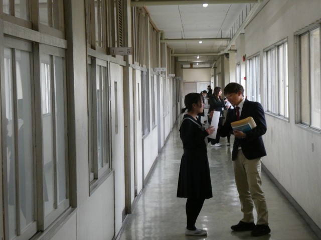 2学期頑張った点や今後伸ばしてほしい点などを担任の先生と確認しながら通知表を受け取りました。