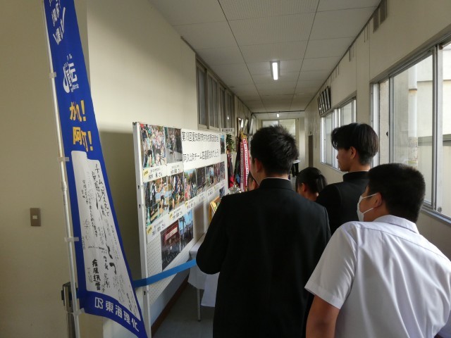 選手たちのがんばりを感じられる展示となっており、生徒たちも興味津々で見ています。多くの生徒に見てもらいたいです。