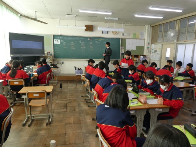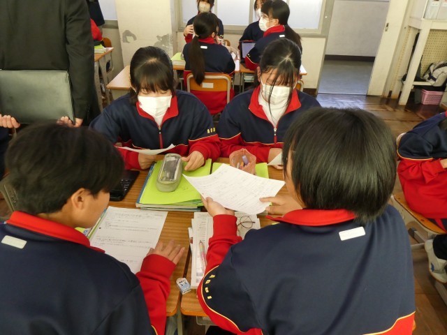 農業、工業、文化それぞれのグループに分かれて、これまでの授業で学んだことを中心に自分達の生活にどのように影響を与えているか話し合い、意見をまとめていました。説得力のある発表になるようにお互いの考えを聞きながらグループとしての意見をまとめあげ、発表することができました。