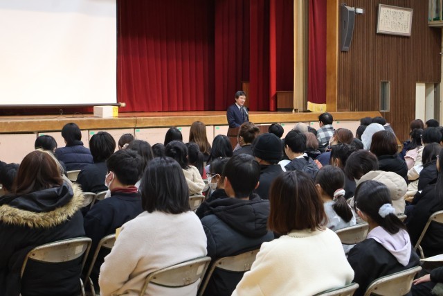 21日(水)と22日(木)に入学説明会が開かれました。町内の6年生が参加し、中学校の生活や部活動、校則などについてそれぞれの担当からの話を聞きました。その後、校内を授業参観しました。4月の入学を待っています。