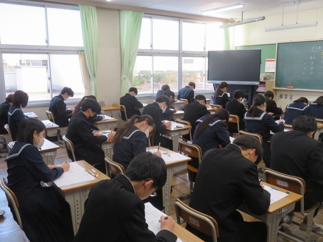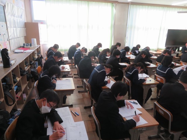 今日から1・2年生は第Ⅲ期テストに臨んでいます。1年間の学習のまとめとして、どの生徒も集中して取り組んでいました。今回のテストを通して今の自分の力を確かめ、次の学年に向けて意識をさらに高めていってほしいと思います。