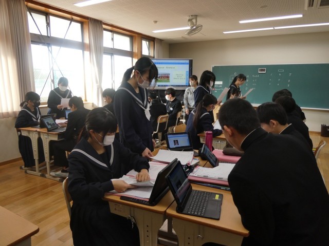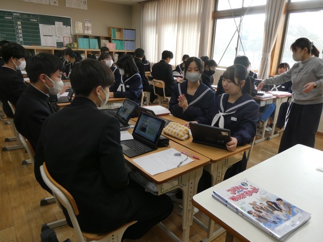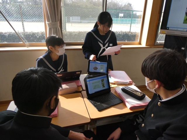 3年生は、自分の「推し」について英語で伝え合いました。これまで学習してきた内容を活用して伝えました。一人一人が楽しく生き生きと話す姿が印象的でした。