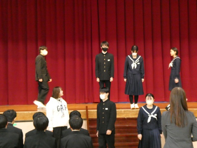3年生は、卒業式に向けて練習を進めています。今日は、入場の練習をしていました。歩き方や視線、動線などを確認しながら練習をしていました。練習にも心をこめて取り組んで当日を迎えてほしいと思います。