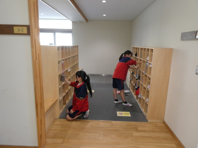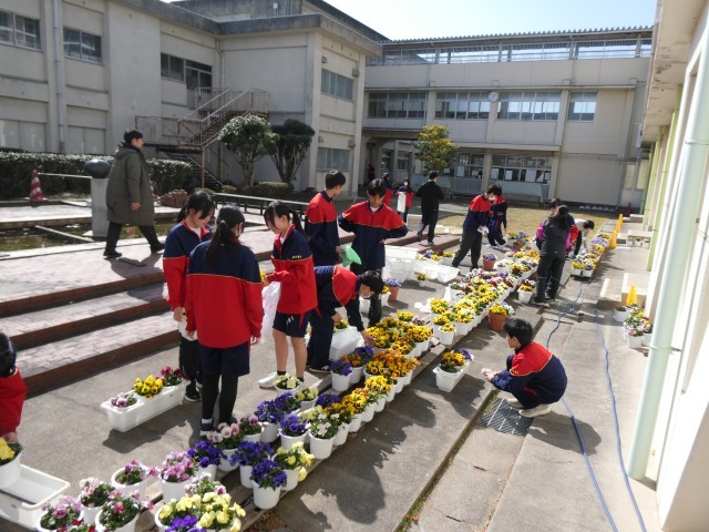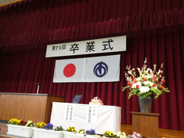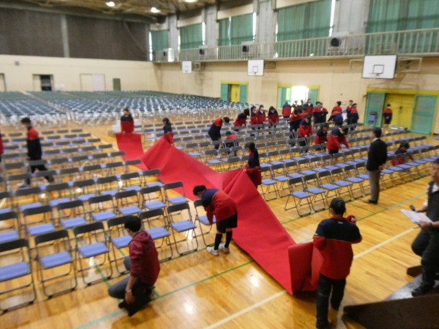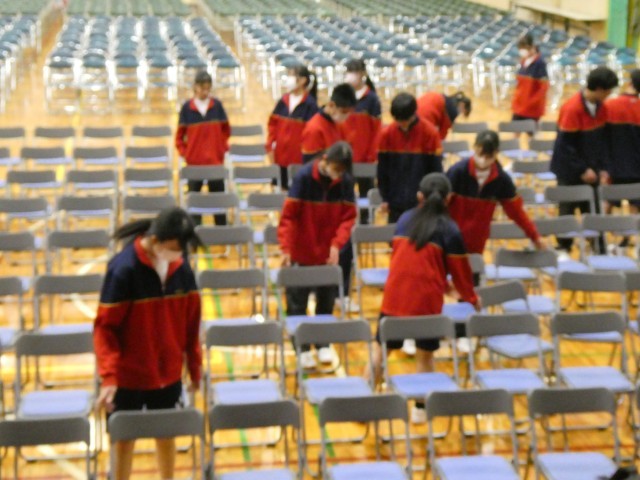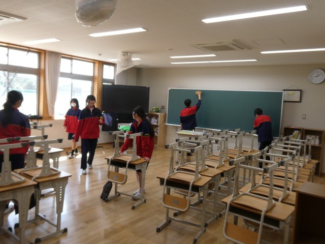午後は、明日の卒業式にむけて、2年生が式場づくりや掃除、教室のかざりつけをしてくれました。