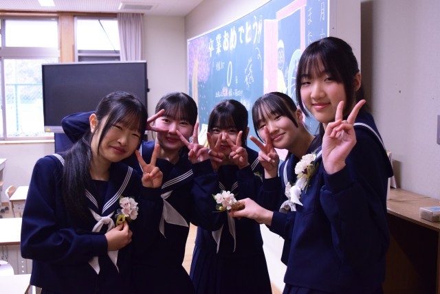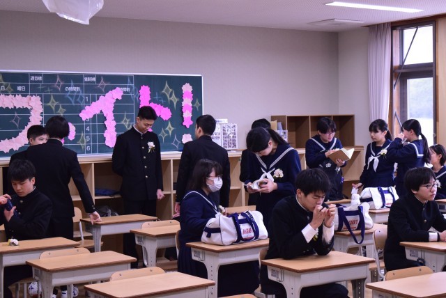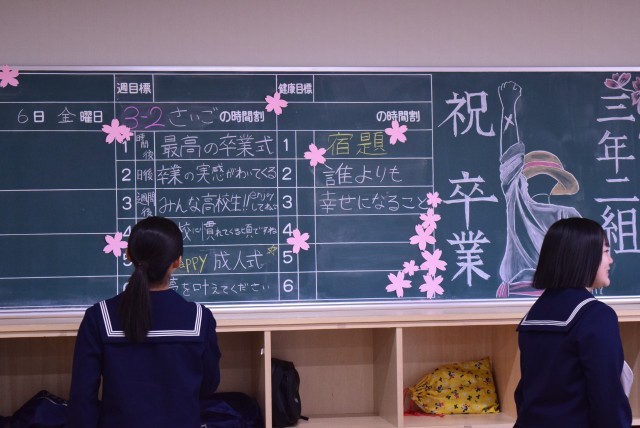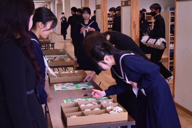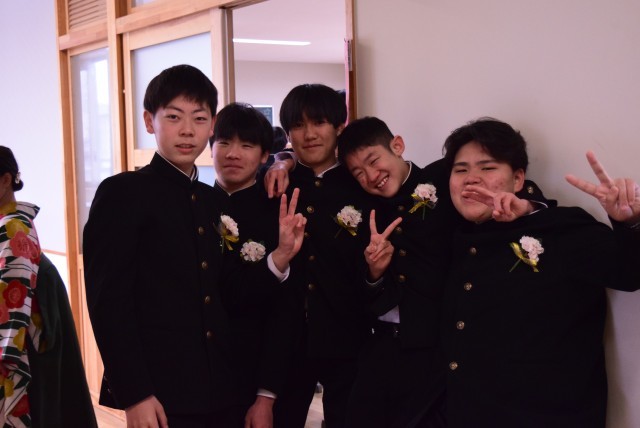 卒業生が登校してきました。みんな晴れやかな顔での登校です。