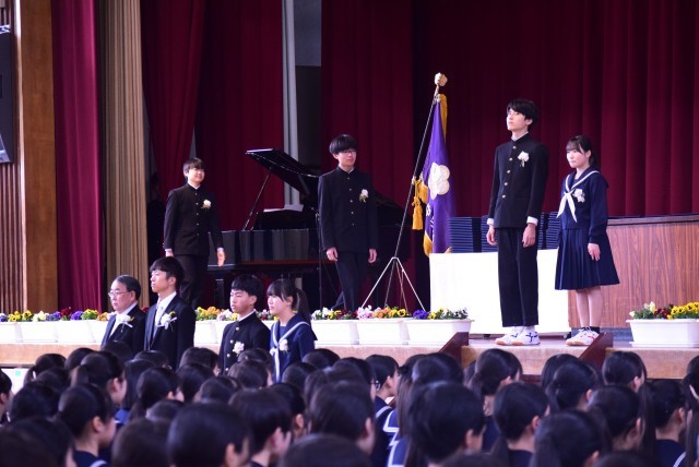 後半クラスが入場しています。在校生も最後までしっかりと拍手をしています。