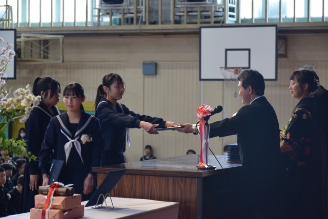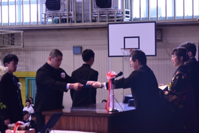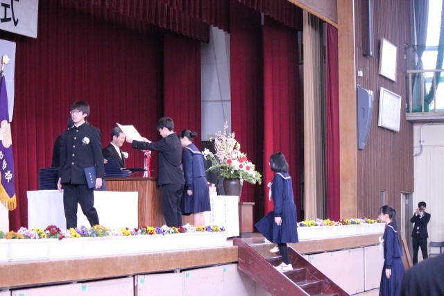 卒業証書授与です。校長先生から一人一人手渡していただきます。
