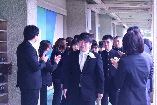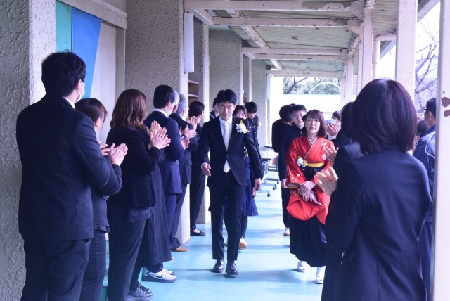 式場を出ると先生たちが花道をつくってお祝いしてくれました。この後は、教室へ戻って学活です。