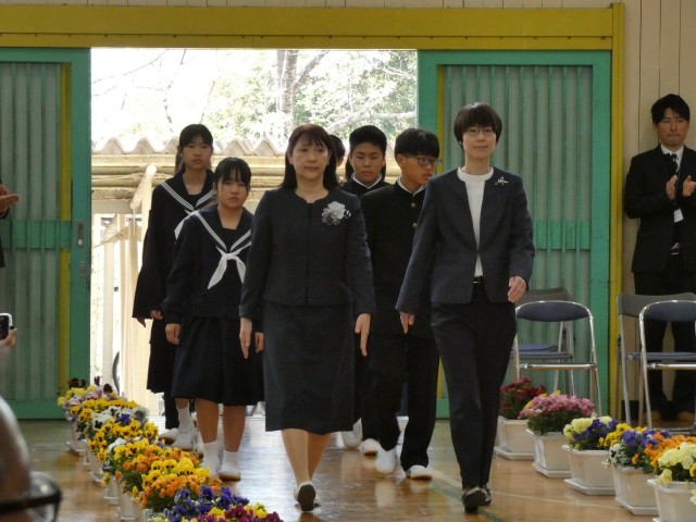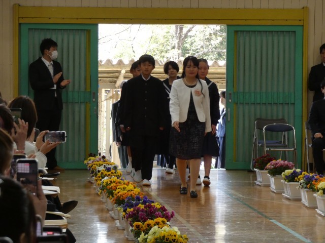 穏やかな春の日差しの中、入学式が行われました。少し緊張が感じられましたが、やる気に満ちあふれた顔で入場する新入生の姿が印象的でした。