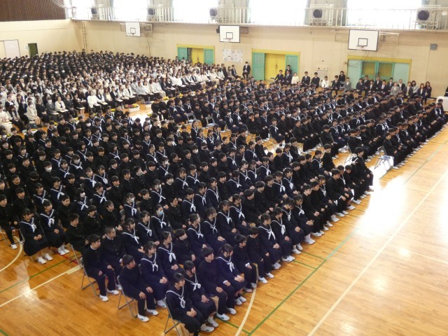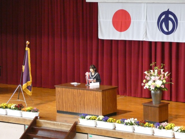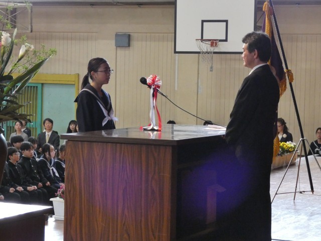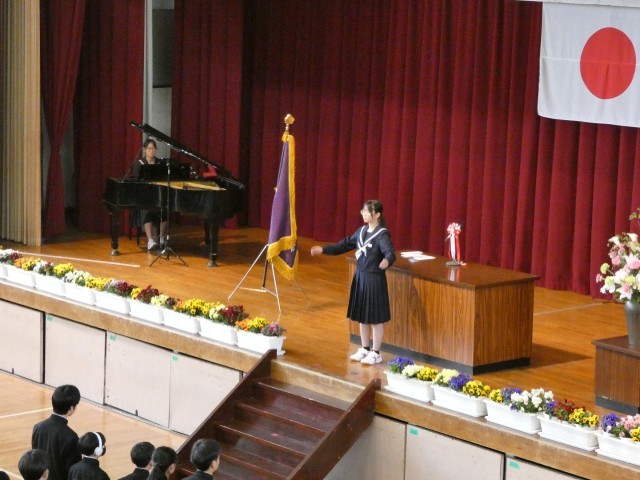 式の中では、校長先生や来賓の方からのお話や在校生の歓迎のことば、新入生誓いのことばなどがありました。389名の新入生を学校みんなで祝福するあたたかい式となりました。