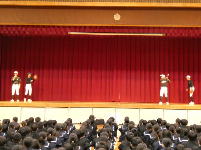 まずは、部活の紹介を行いました。それぞれ活動の内容などを簡単に紹介しました。