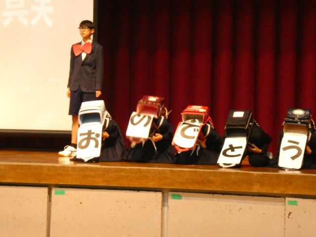 最後に、ビンゴゲームをし、阿中マスコットキャラクターのシールをプレゼントするなど、1年生に早く学校に慣れて楽しんでもらえるように工夫していました。